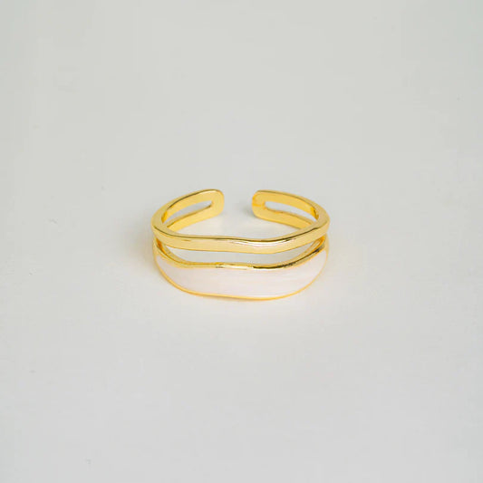Vintage White Double Glass Gold Ring
