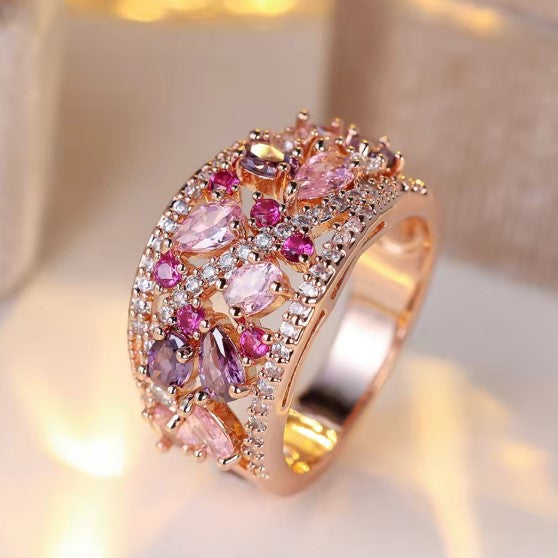 Trendy Purple Pink Zircon Wide Vintage Ring