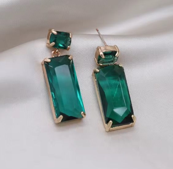 Vintage Green Rectangle Crystal Earrings